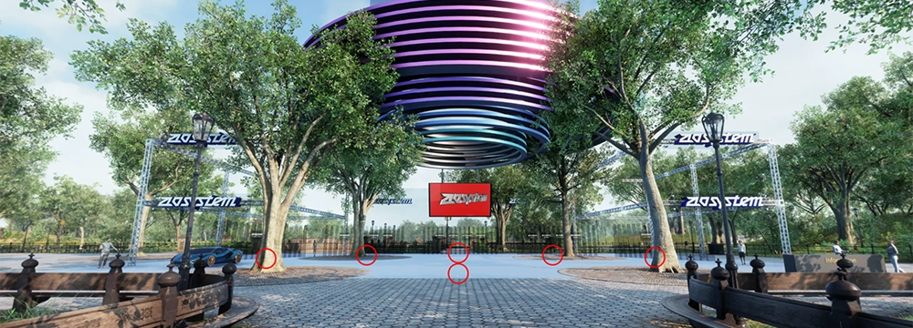 会場丸ごと自社ブランドで装飾できます。建物そのものを自社ブランド名でラッピングするなど今まで不可能だったことが実現します。