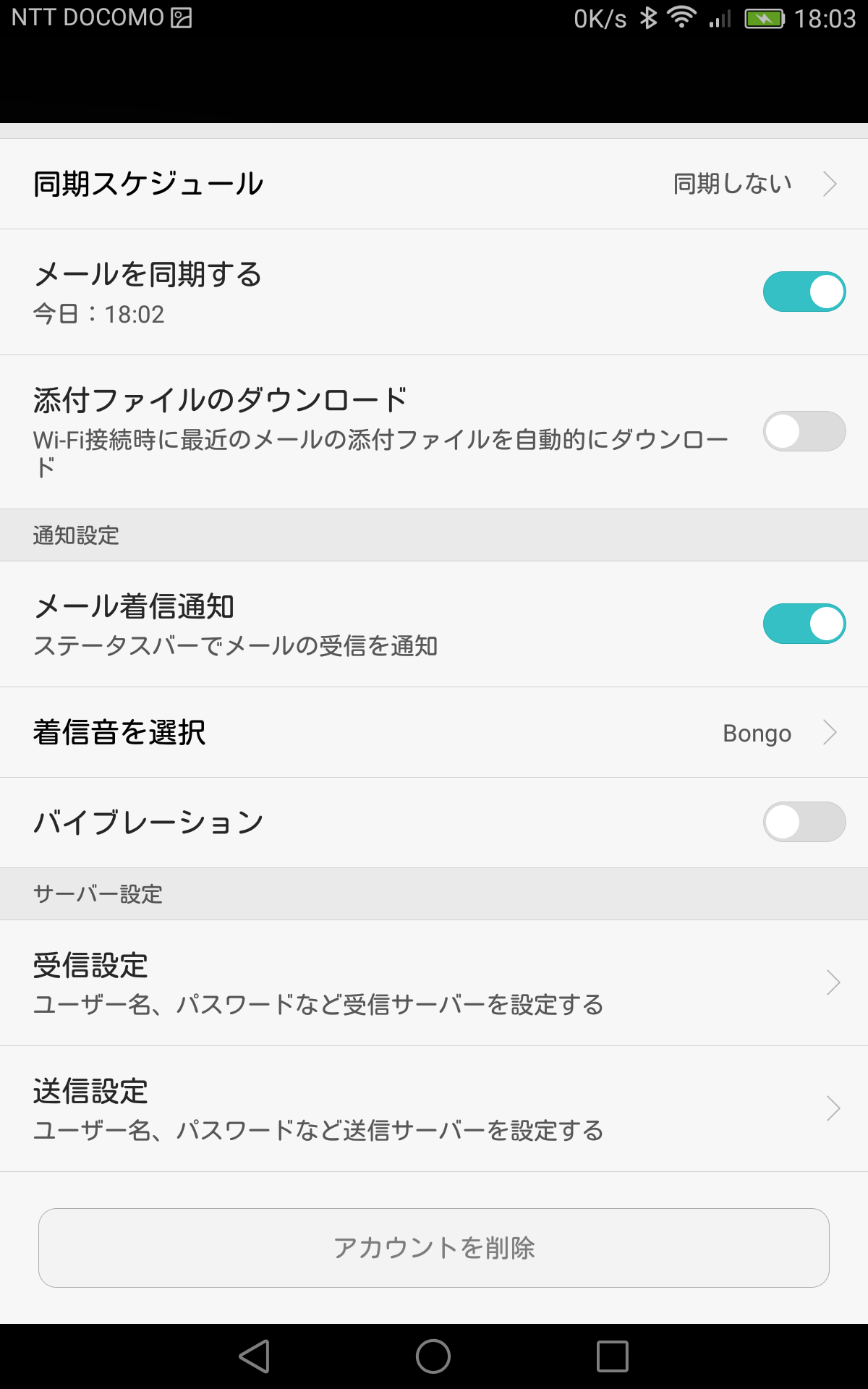 設定変更するアカウントをタップします。