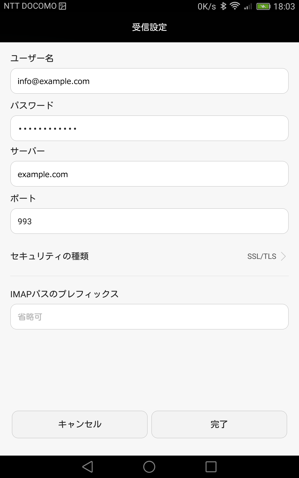 ポートは自動的に993になります。(IMAPの場合)