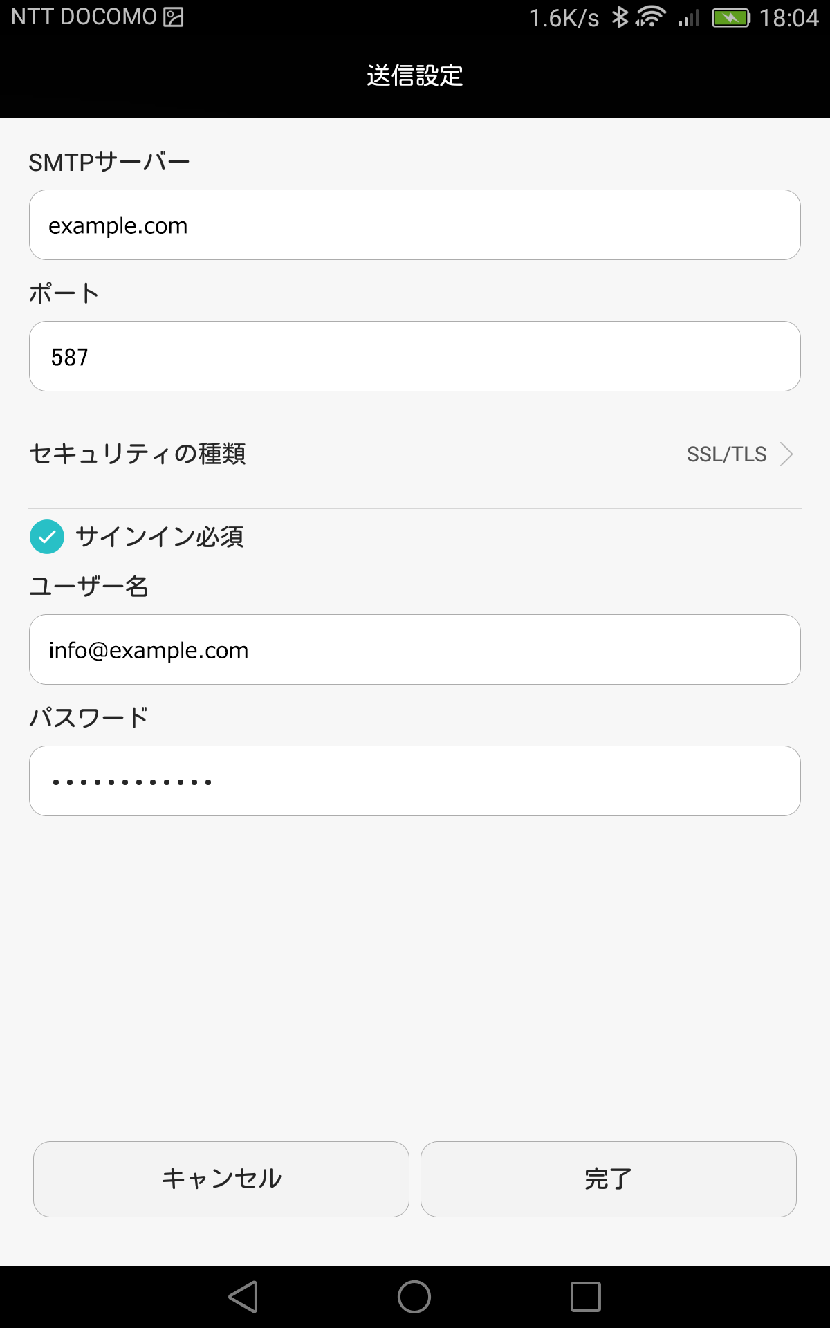 SMTPサーバーを入力します。