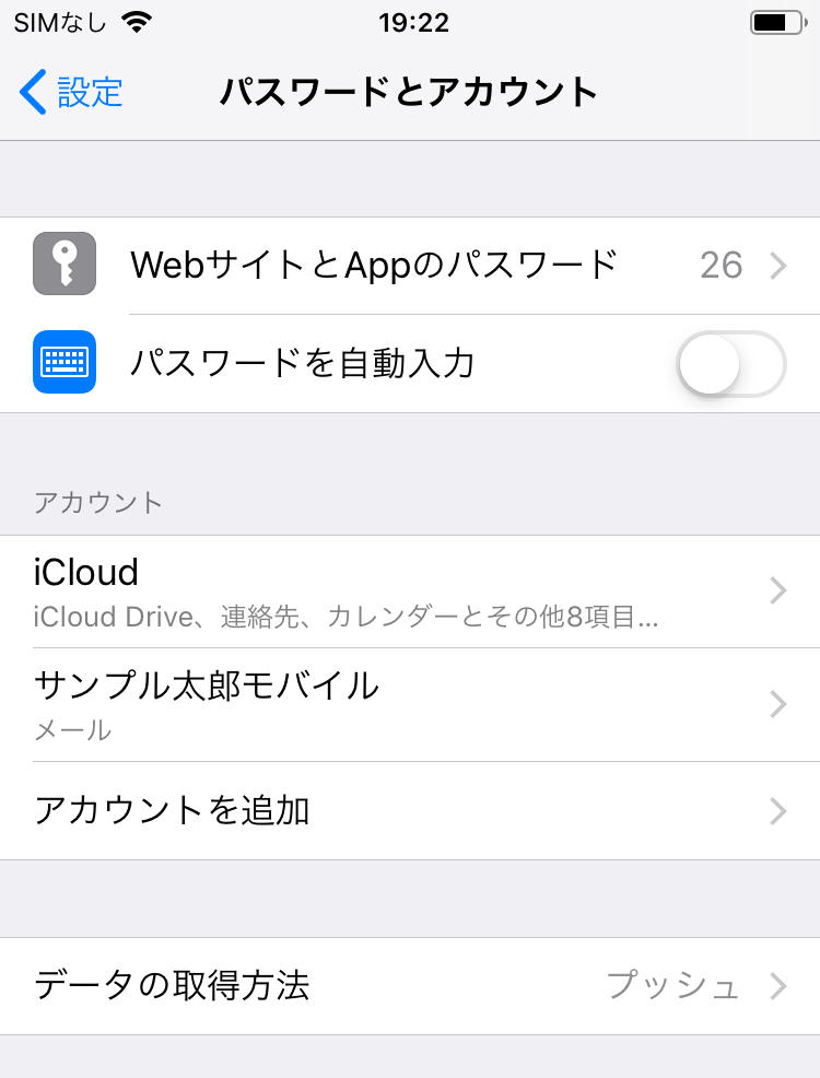 「パスワードとアカウント」をタップします。(iOS11,iOS12)
