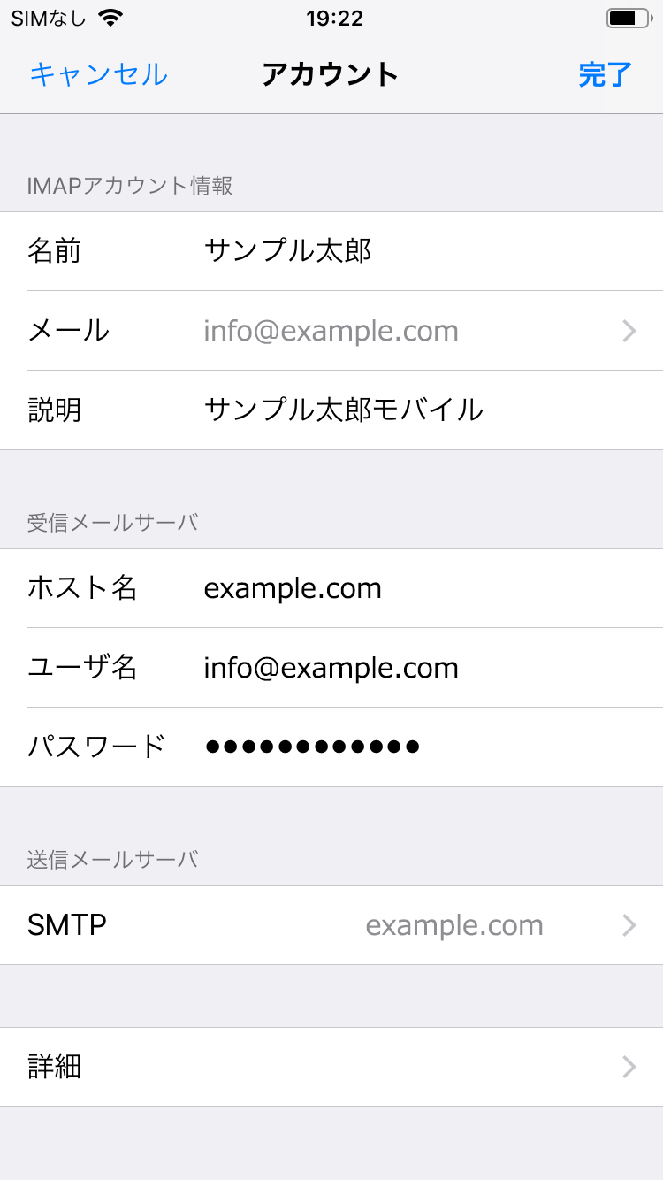 受信メールサーバー(POP3)、送信メールサーバー(SMTP)共に、ご自身のドメイン名を登録ください。