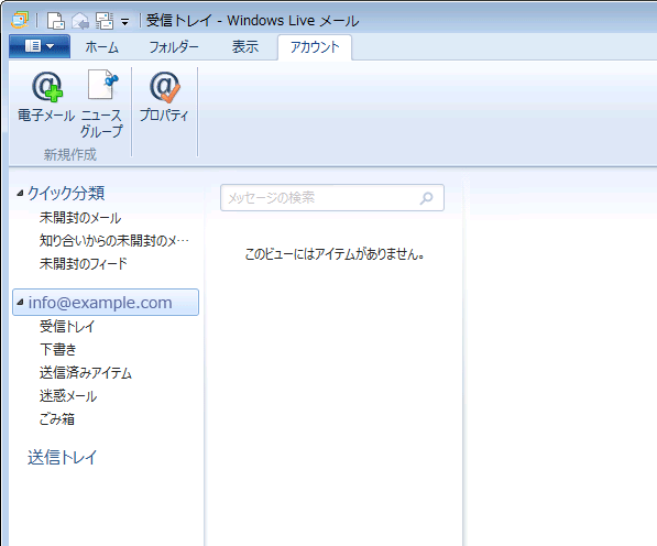 ライブメールを開きます。設定変更するアカウントをクリックします。