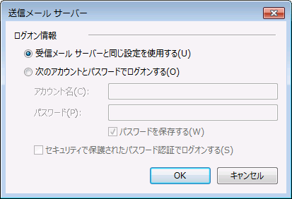 受信メールサーバーと同じ設定を使用する