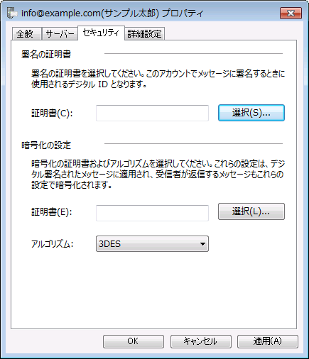 セキュリティタブでは何も設定不要です。