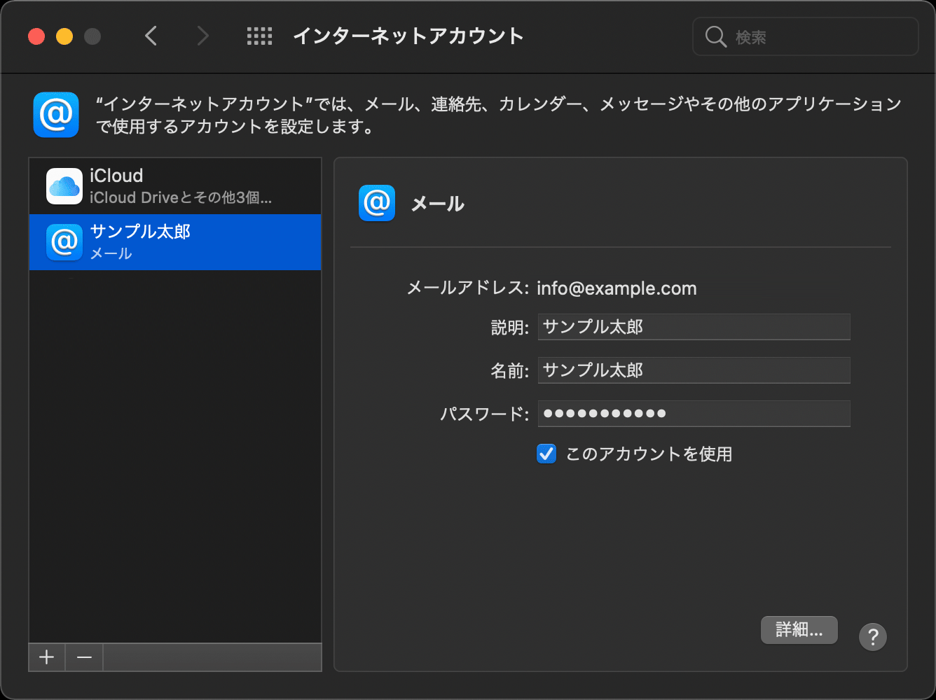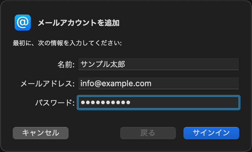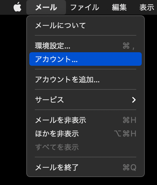 メニューバーの[メール] > [アカウント] をクリックします。