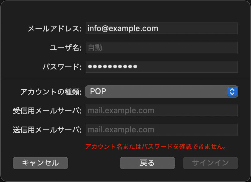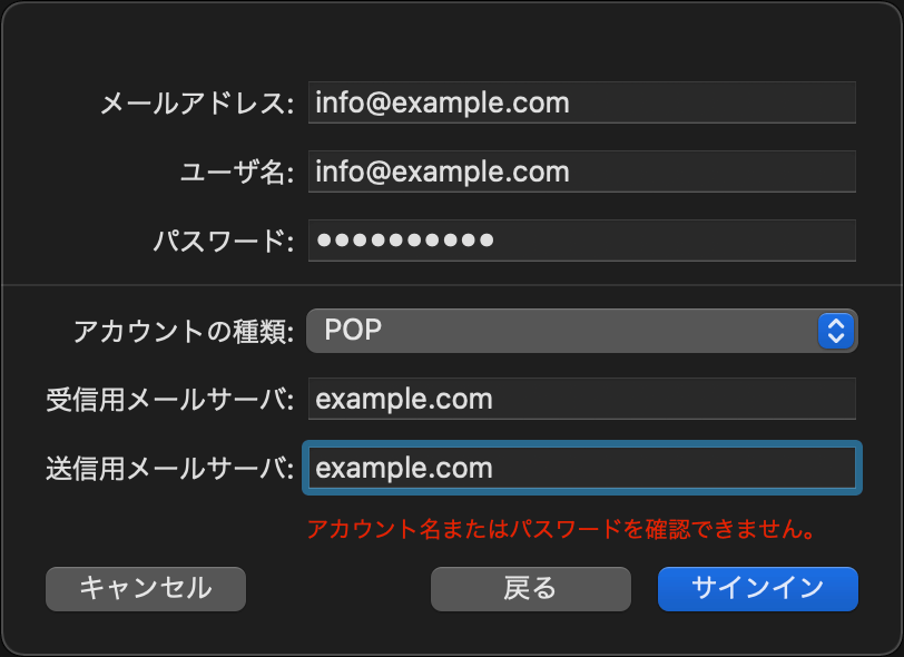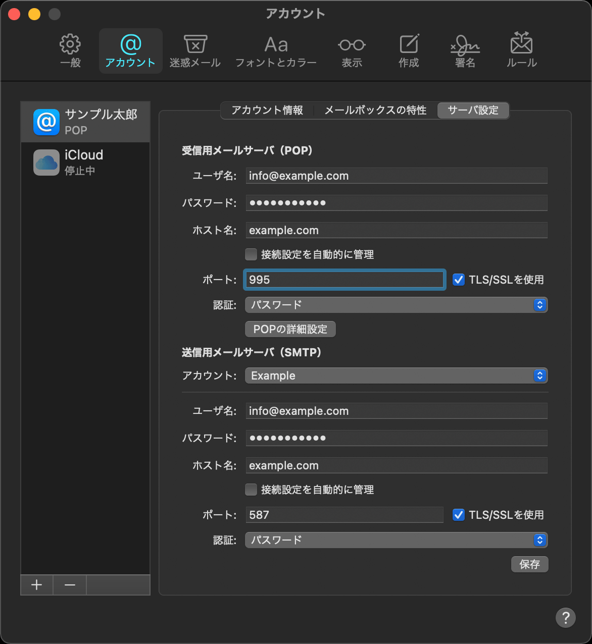 「アカウントの種類」はPOPを選択します。
