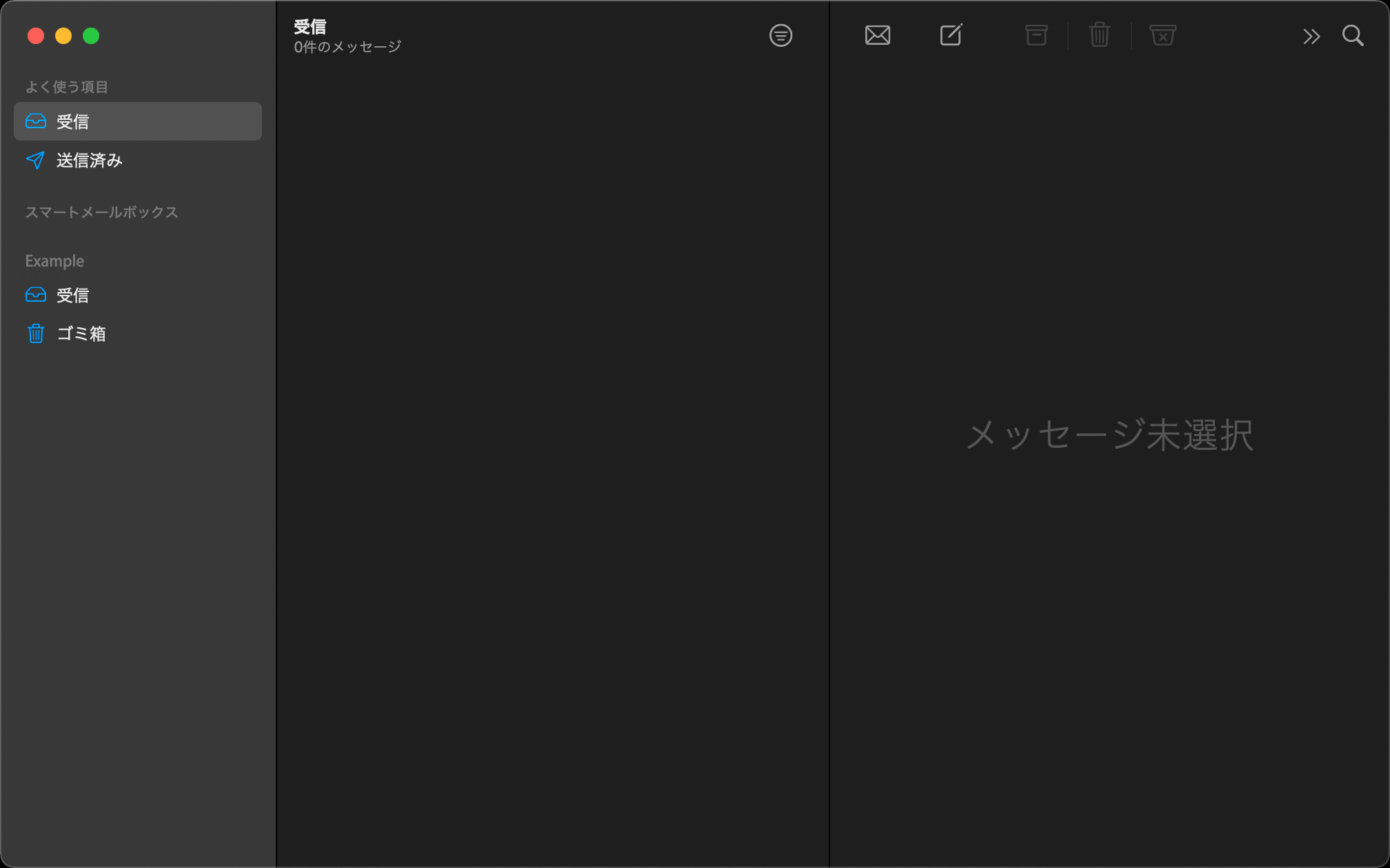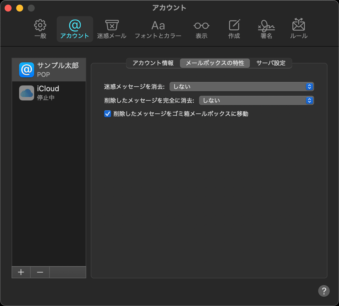 以下の例では削除したメールはゴミ箱に溜まり続けますのでゴミ箱を定期的に削除します。