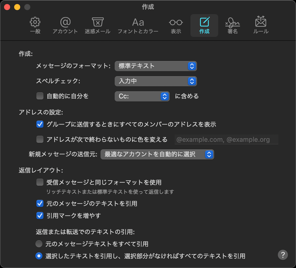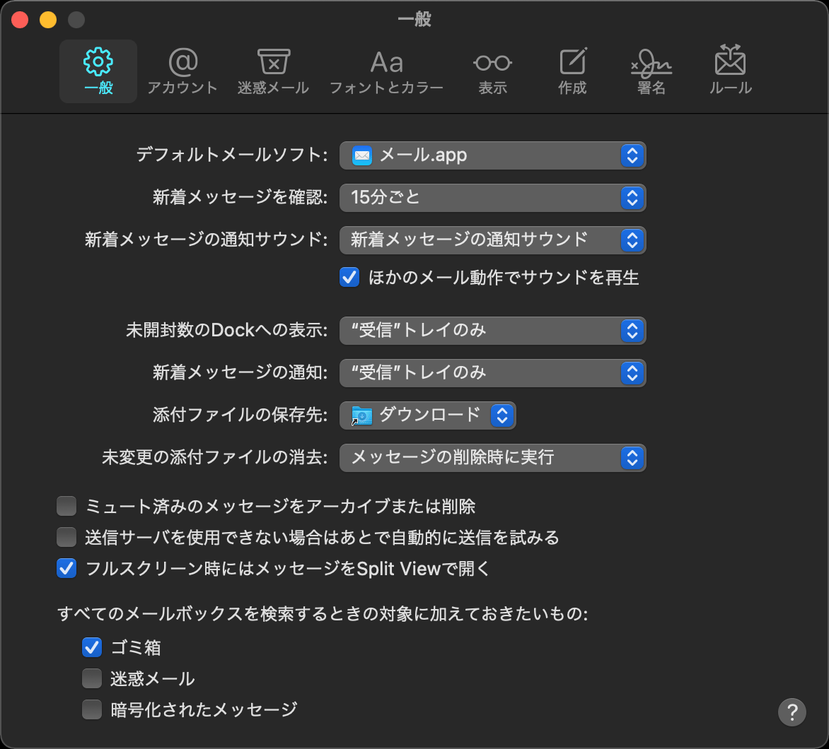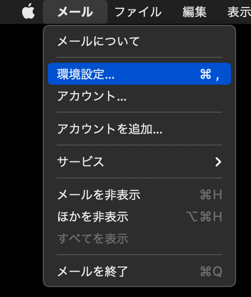 メニューバーの[メール] > [環境設定] をクリックします。