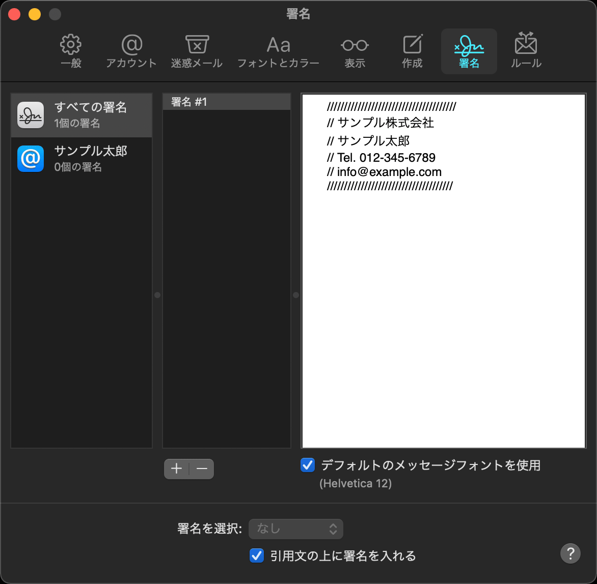 署名を作成すればメールに自動挿入されますのでお勧めします。